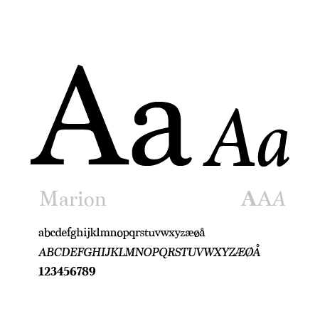 Marion is a serif typeface with inspiration from the nineteenth century with a touch of industrial design with its hammer claw shapes. Itās used as a secondary typeface used in additional information to give more hierarchy and trust to informaiton.