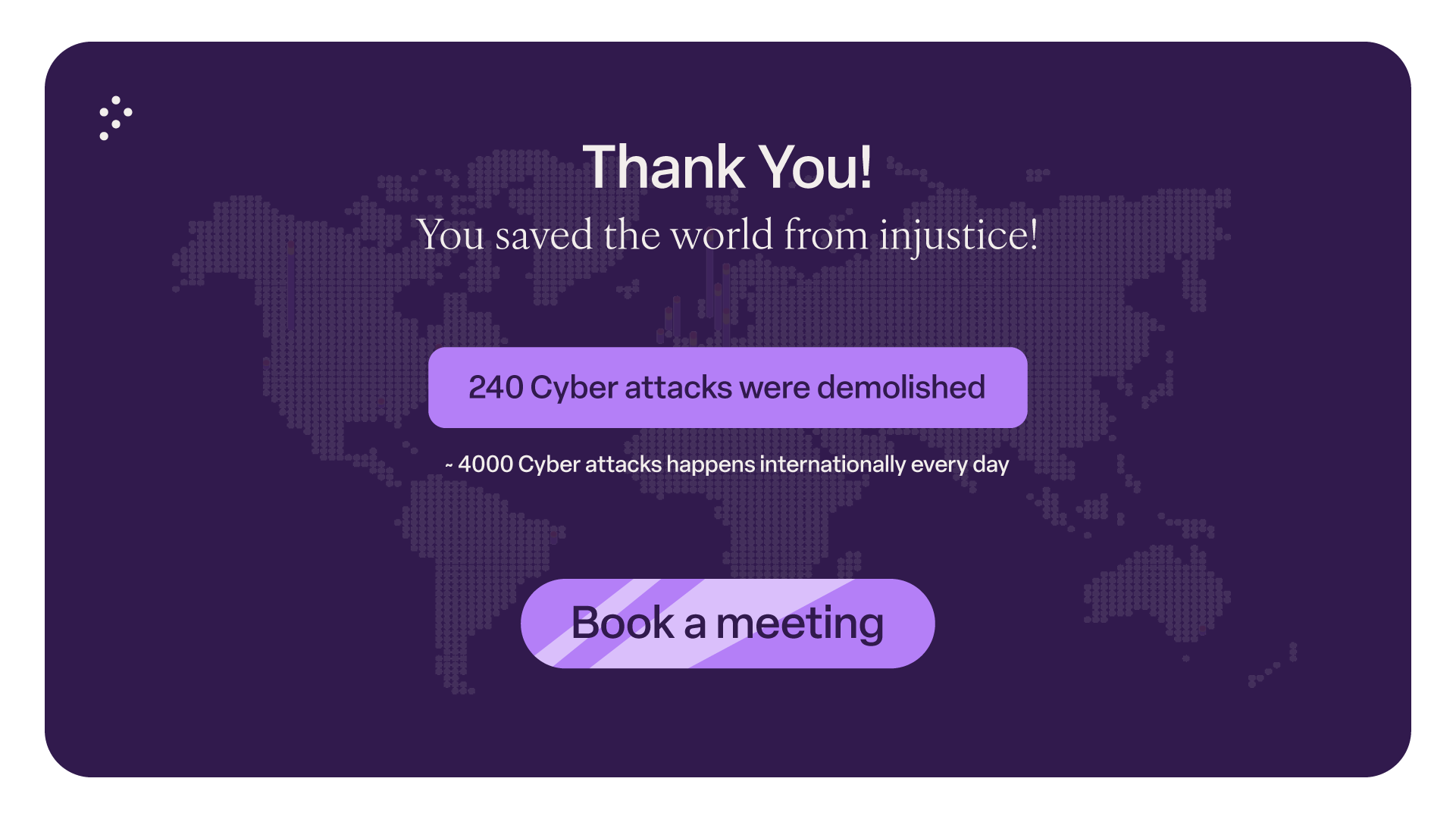 The game is short and clear—the goal is to defend your hardware from cyber threats. At the end, the player learns just how common these threats are and is presented with a CTA button leading to a customer meeting about Pistachio’s services and plans.